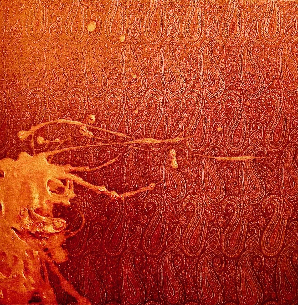 The “Acerbic Drips” Series consists of twelve paintings on acid attack stories from Bangladesh. During my first visit to Dhaka in 2004, I had the unique honor of meeting and interviewing several survivors of acid violence. From a young man attacked over a property dispute to many young women attacked for rejecting romantic advancements and marriage proposals, to a young boy forced to drink acid by his aunt over property inheritance. The initial set of paintings was splatter paintings done on skin-complexioned panels. But as the goal of the paintings was to depict the beauty and resilience of acid survivors, the gesso splatters were created over delicately embroidered Indian silk with gold weaves. Though the textures of the splatter mimic the textures of acid-burned skin, they are of the same color as the silk fabric to convey a process of healing and rehabilitation. However, metaphorically, the splatters are the representation of the survivors as autonomous individuals. Some stand out more, and some blend in more with the background fabric, some are heavily textured, while others are not. The paintings attempt to convey the most arduous part of the acid attack journey— the rehabilitation process where survivors are assisted in returning back into society and trying to “fit in.” For many, the rehabilitation process lasts a lifetime. Detailed descriptions of their stories are in the book Corrode: An Artist’s Response to Acid Violence in South Asia.